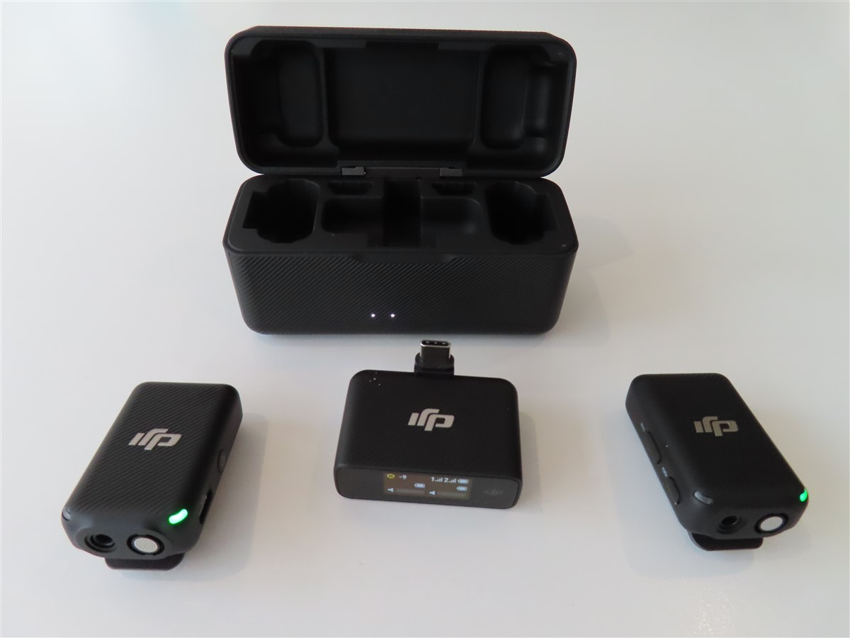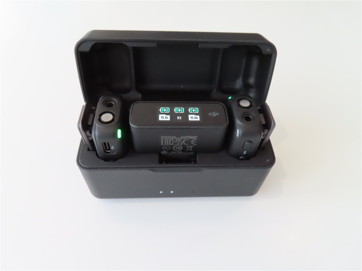 1 Mikrofonsystem, Fabr. DJI, Typ MIC bestehend aus Ladeschale, 2 Sender (Ansteckmikrofon), 1 Empfänger mit USB-C, kabellos bis zu 250 m