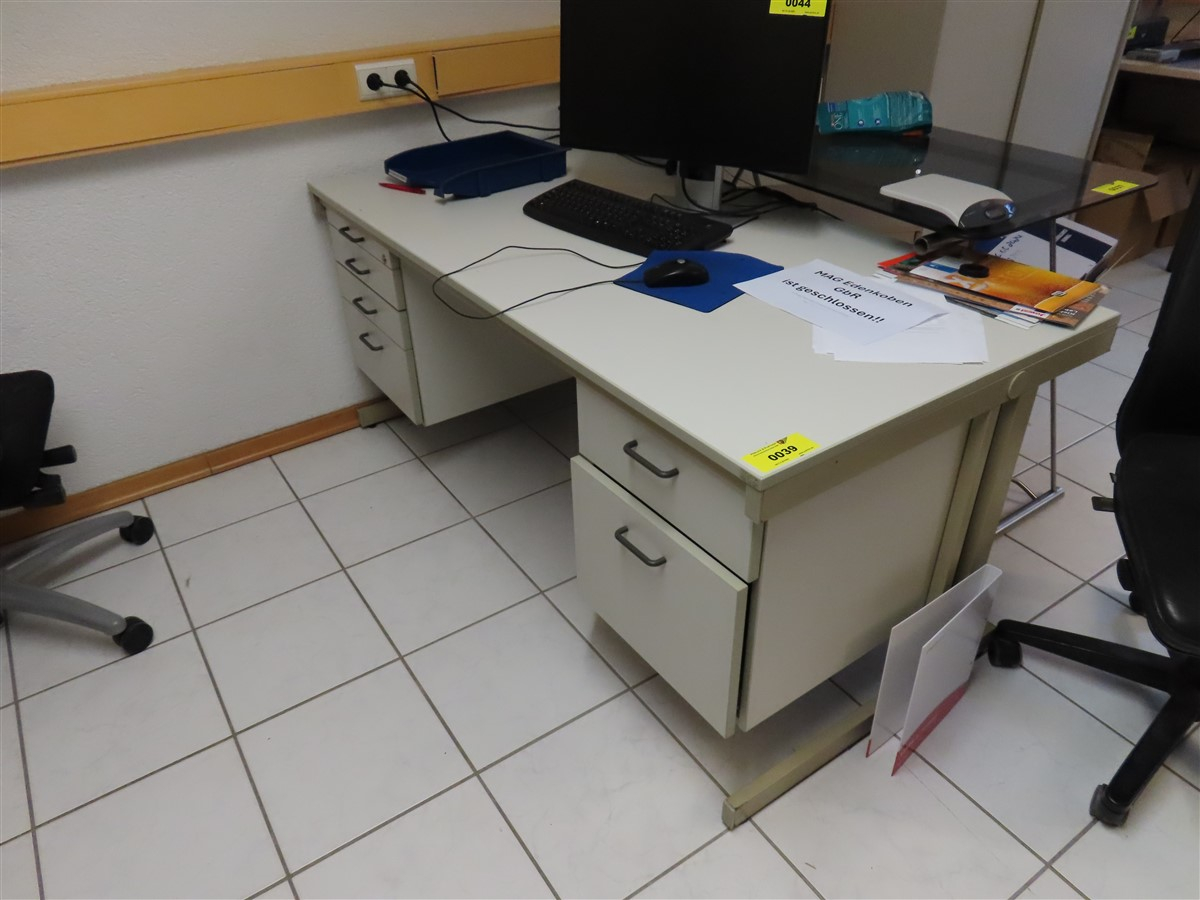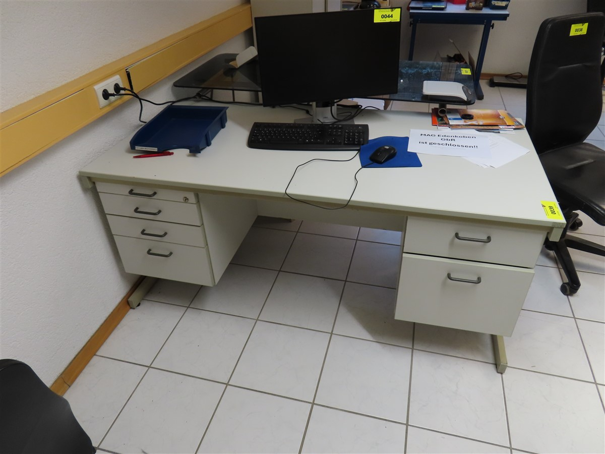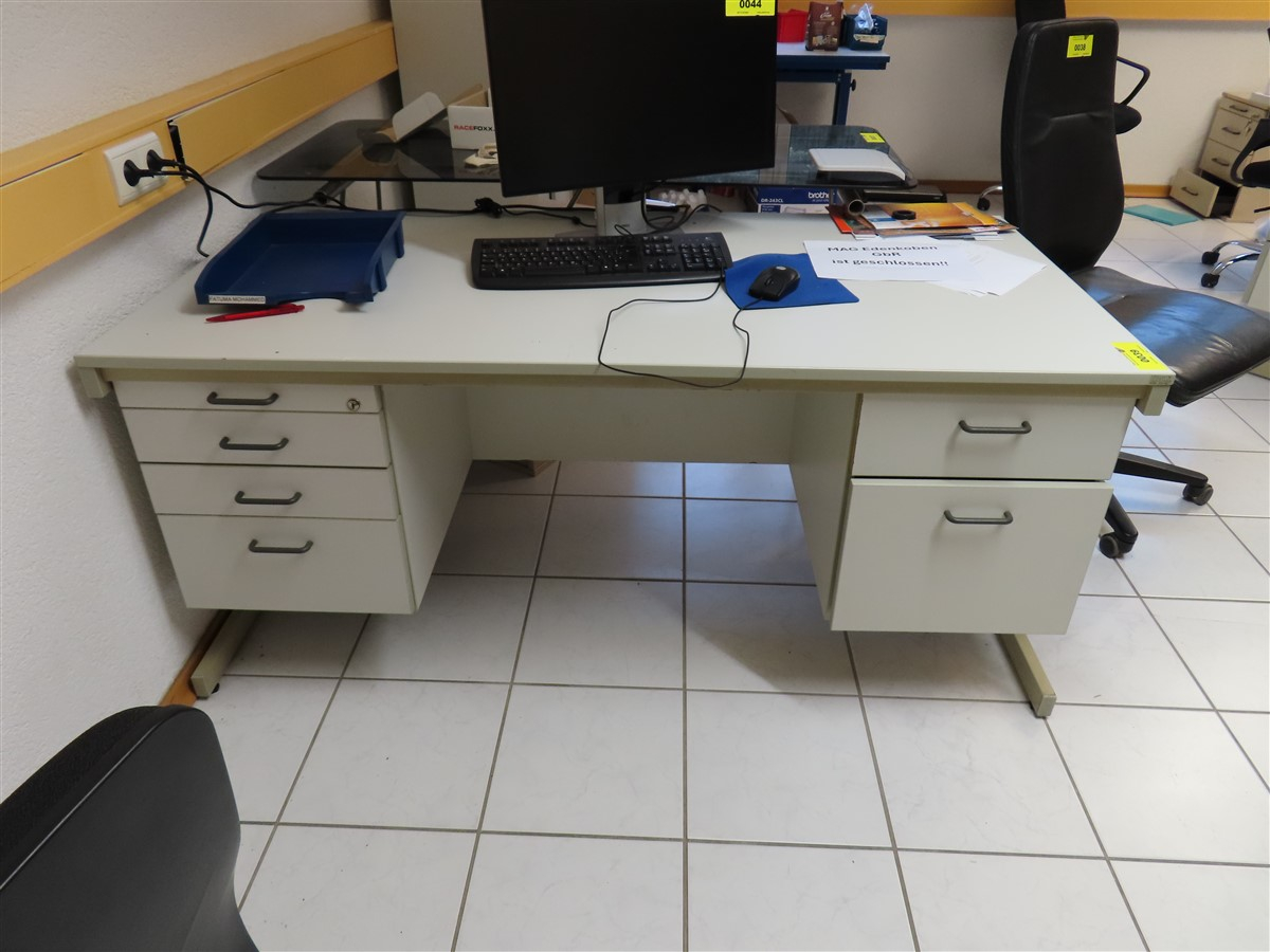 1 Schreibtisch, ältere Ausführung, integrierte Bürocontainer, grau-beige