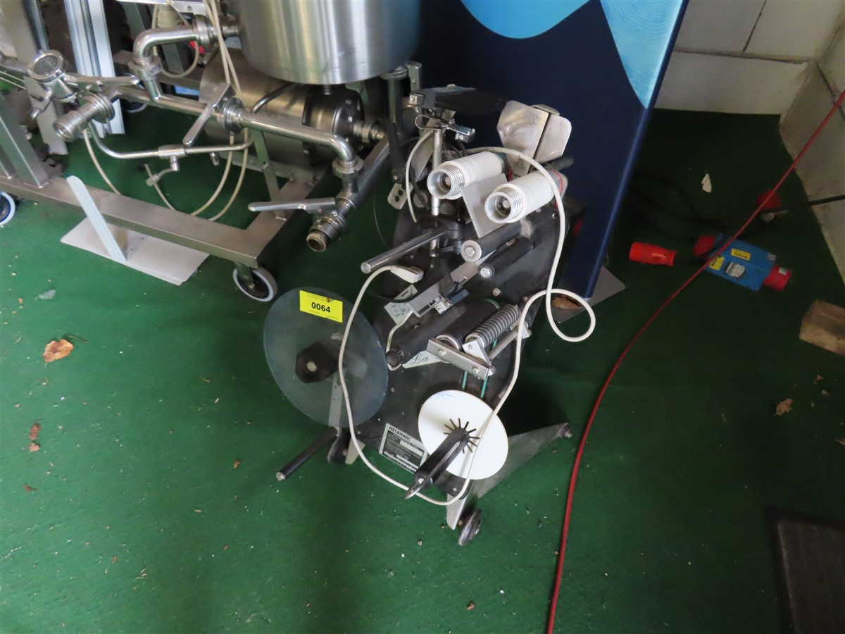 1 Mobile Etikettiermaschine für selbstklebende Etiketten, Fabr.: Mecamarc, Typ: Meca Puce Rece, Serien-Nr.: 1846 00 08