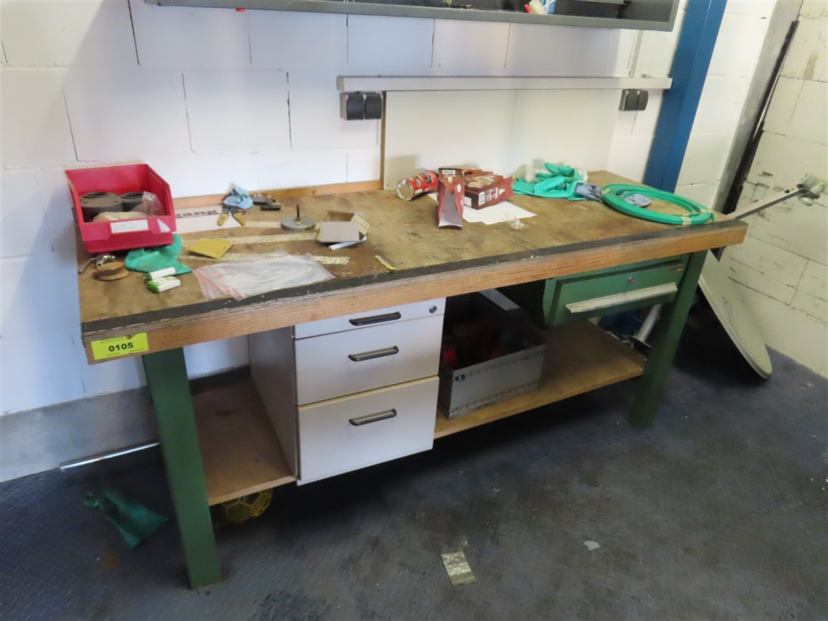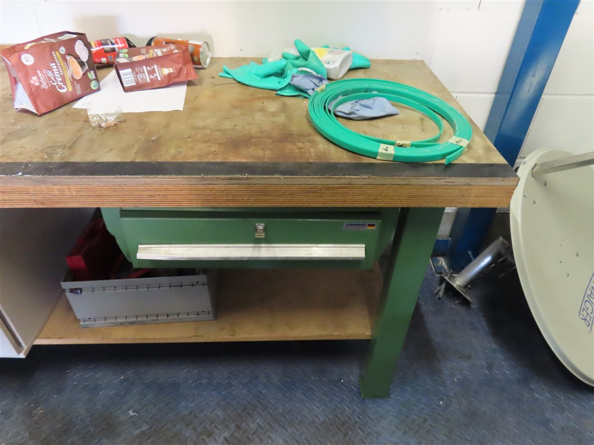 1 Werkbank, Holzarbeitsfläche mit Ablagefach, grün