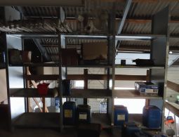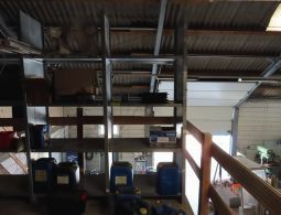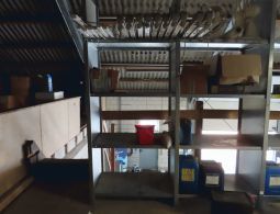 1 Metallsteckregal, ca. 4 lfdm., div. Ablagen, verzinkt