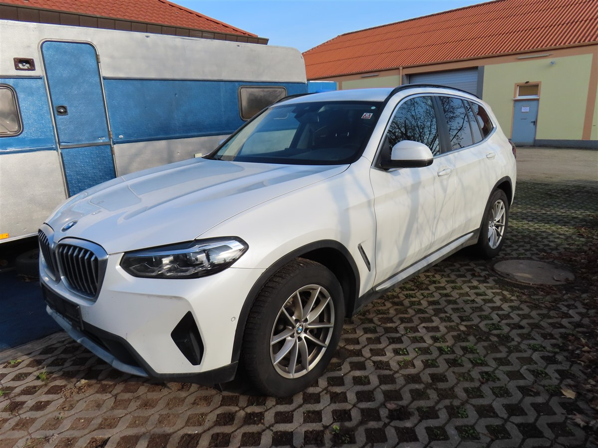 PKW, Fabr.: BMW, Typ: X3 X-drive 30d, EZ.: 02.09.2022, 210 kW, Diesel / Hybrid, Euro 6, Fahrgestell-Nr.: WBA85BZ040N160286, abgel. Km-Stand: 132.399, Innenraum leicht verschmutzt, 8-fach bereift.