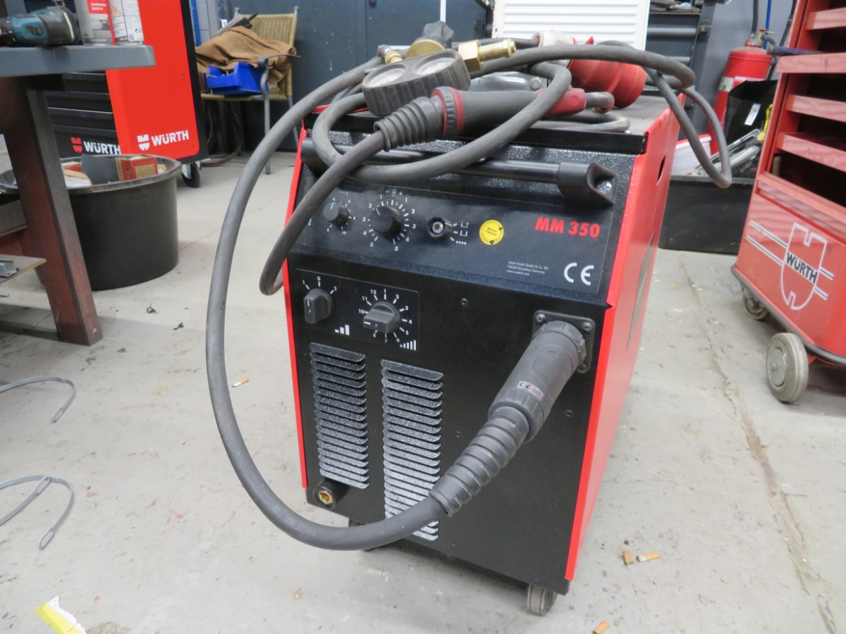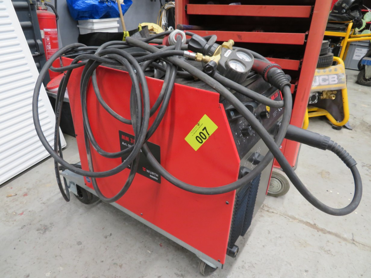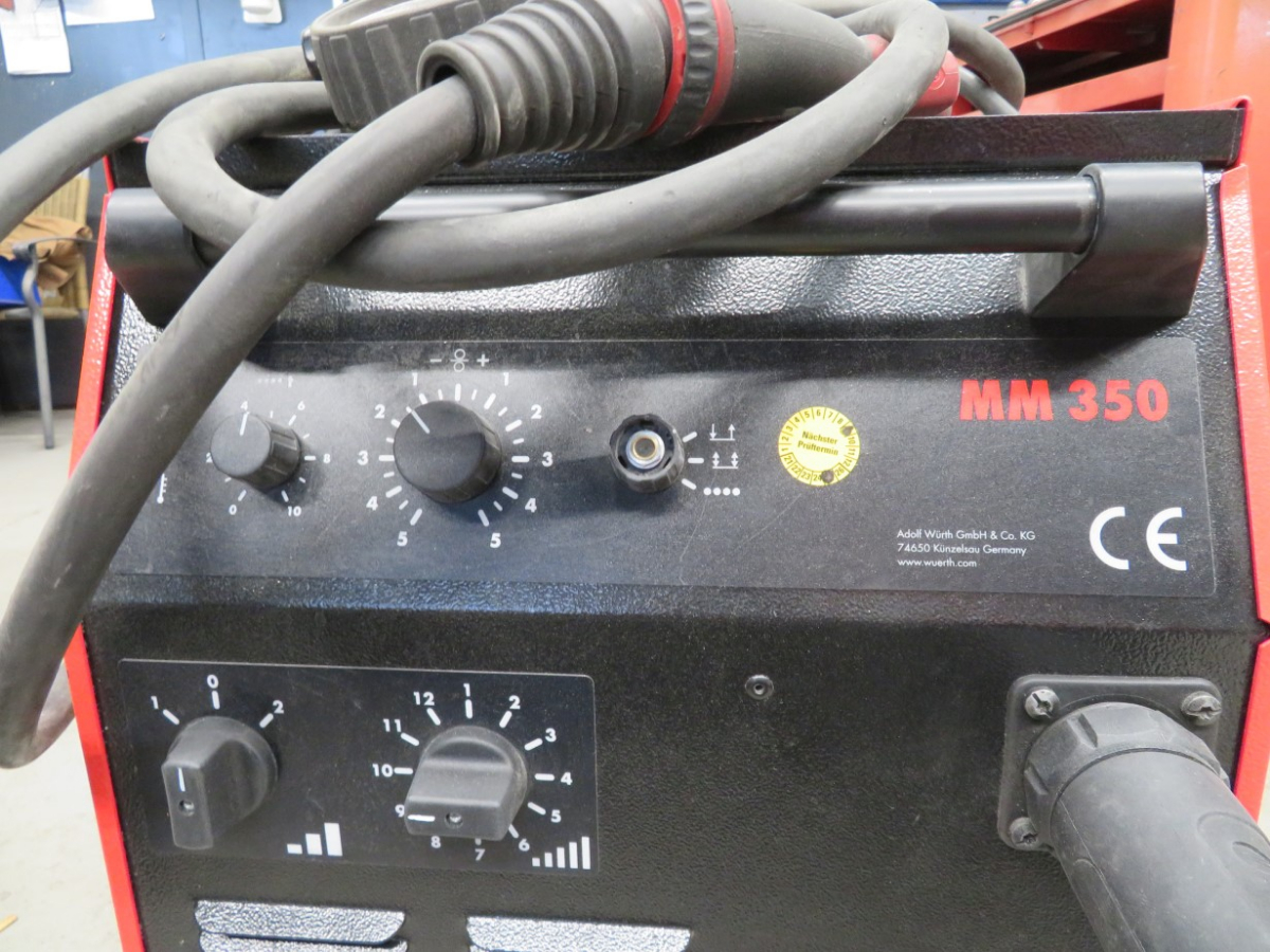 1 MIG/MAG Schweißgerät, Fabr. Würth Master, Typ MM 350, Artikel-Nr. 5952 352 351, mit 1 Schlauchpaket, Griffstück und Druckminderer