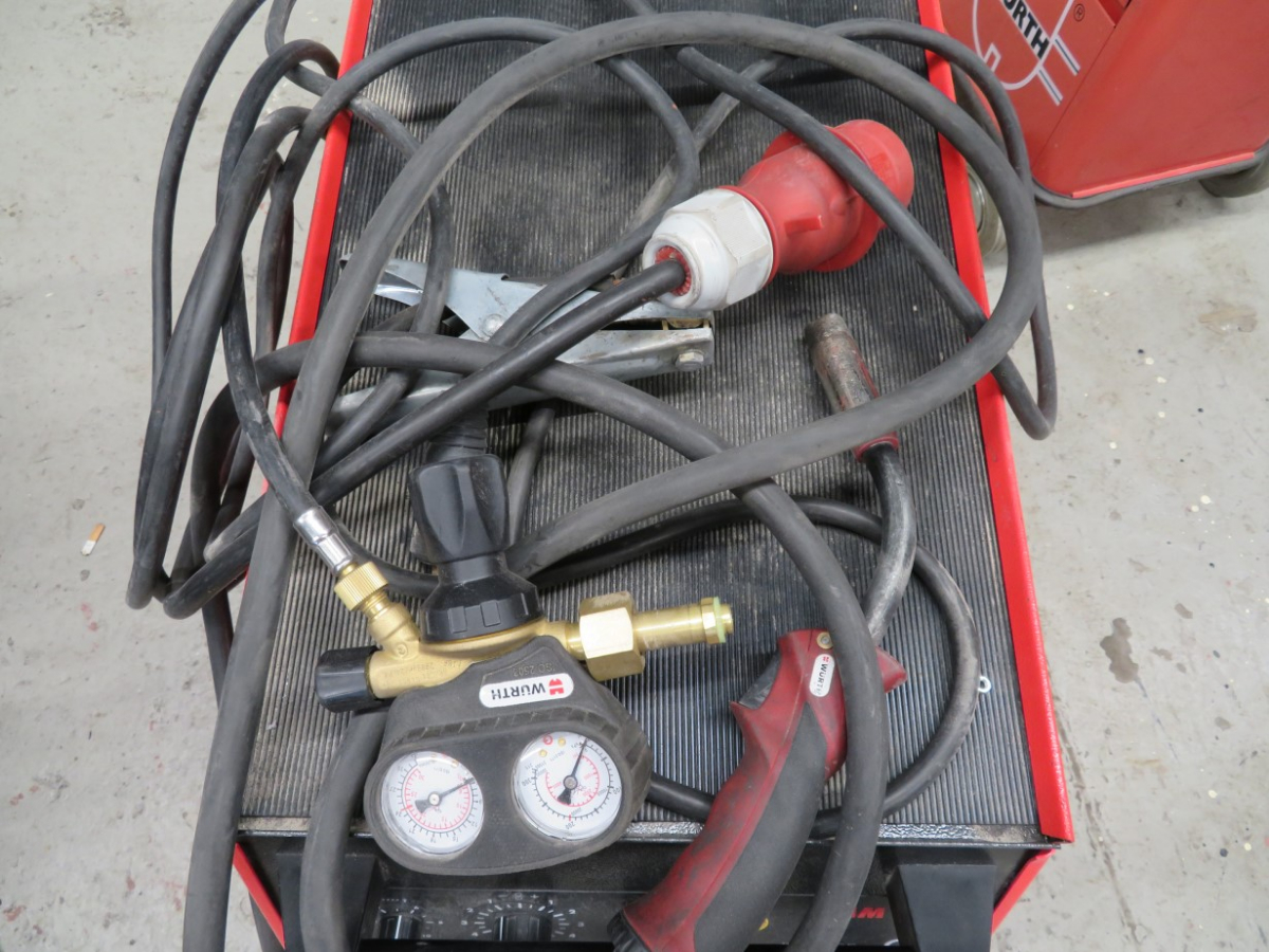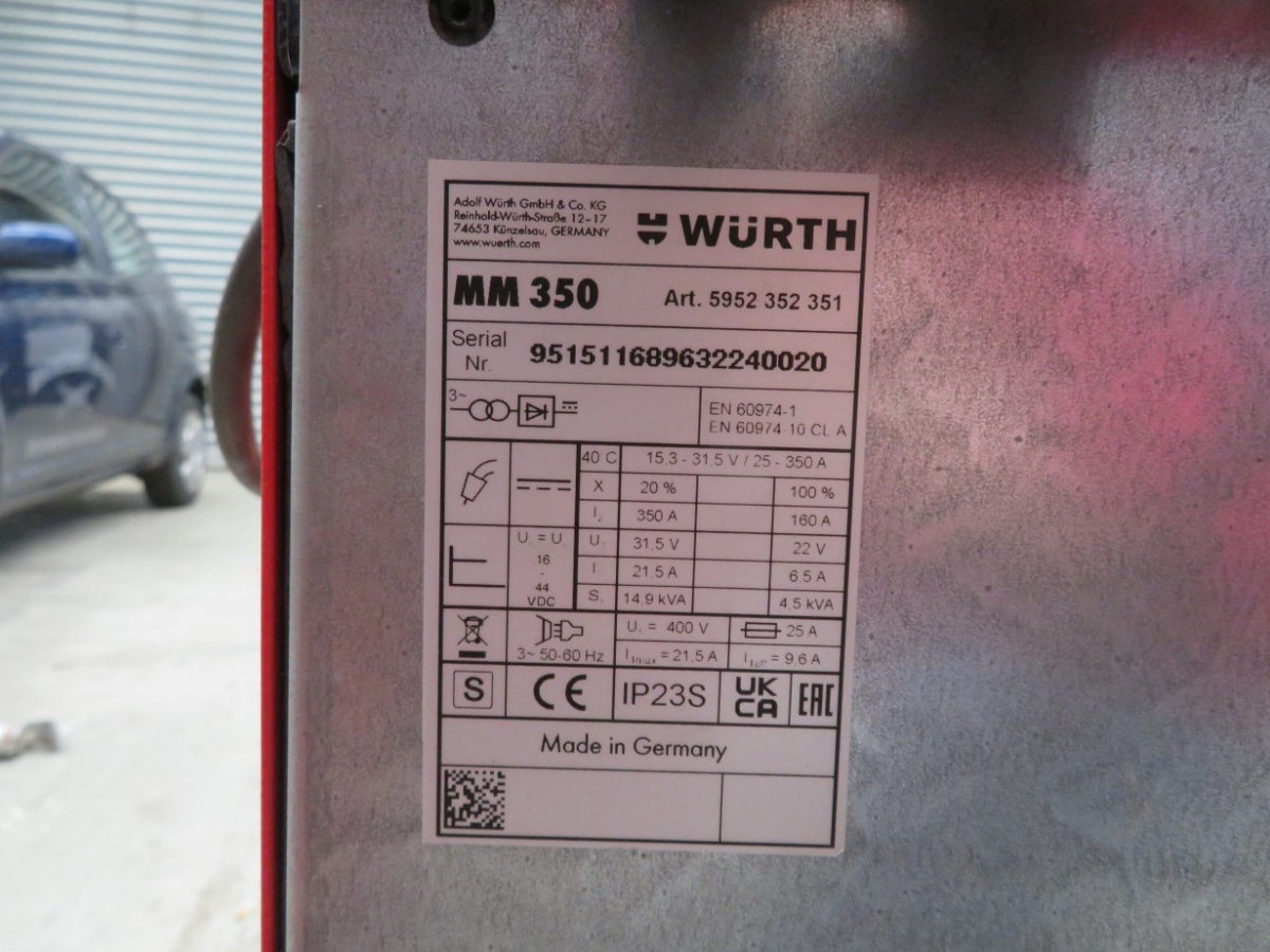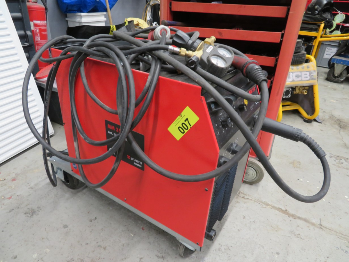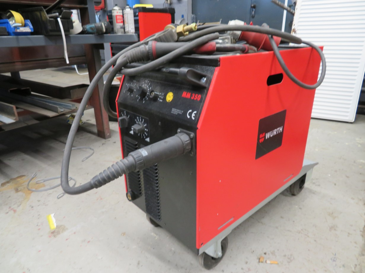 1 MIG/MAG Schweißgerät, Fabr. Würth Master, Typ MM 350, Artikel-Nr. 5952 352 351, mit 1 Schlauchpaket, Griffstück und Druckminderer