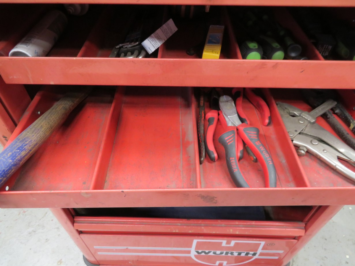 1 Werkstattwagen, Fabr. Würth, mit 1 Inhalt, bestehend aus: Schraubendreher, Maßband, Inbusschlüssel, etc.