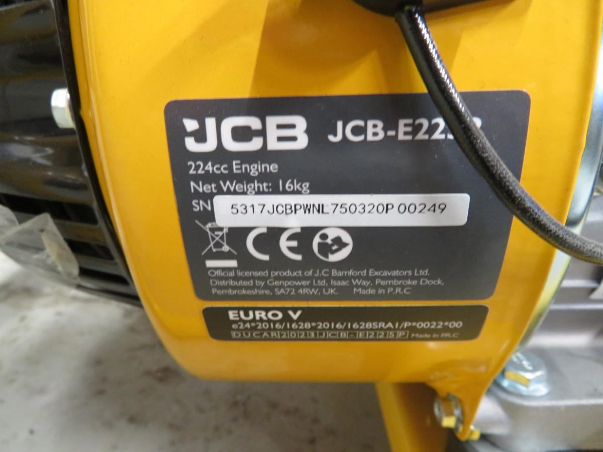 1 Hochdruckreiniger, Fabr. JCB Typ JPWNL 750320P, mit 1 Motor: JCB-E225P, Arbeitsdruck: 186 bar, Maximaldruck: 213 bar, Durchfluss: 10,7 l/min, Schlauchlänge: 12 m, 1 Drucklanze, neuwertig
