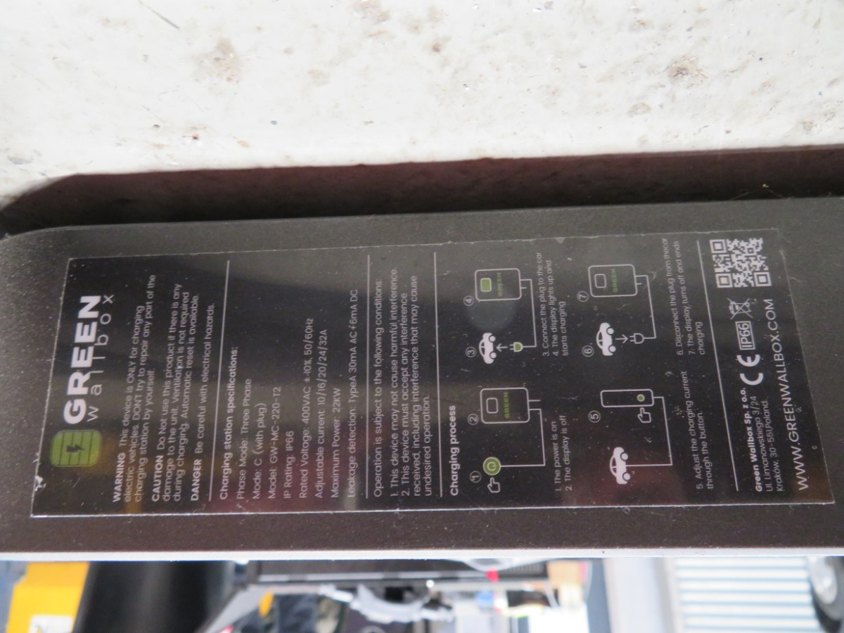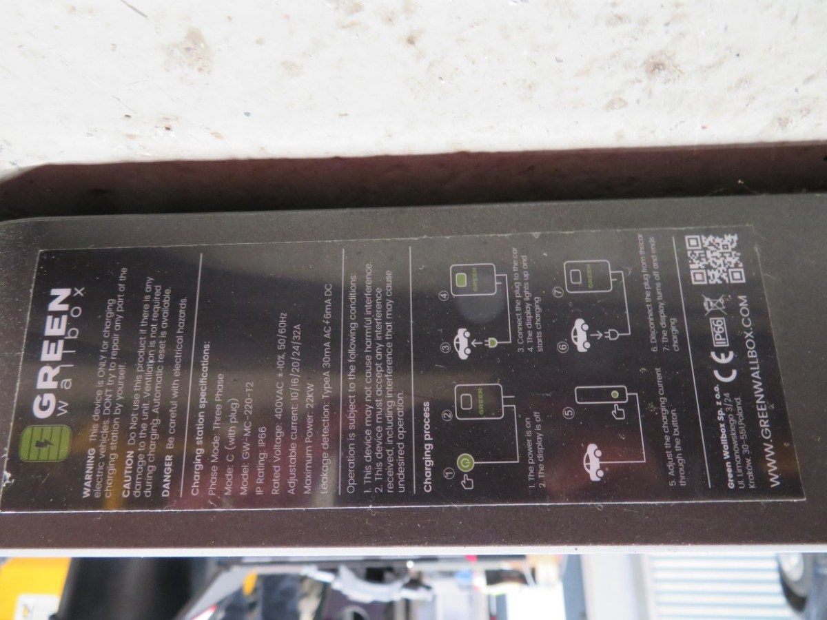 1 Ladestation, Fabr. Green Wallbox, Typ GW-MC-220-T2, Ladeleistung 22 kW, mit 1 Typ-2-Steckdose, IP66 Ladegerät