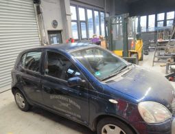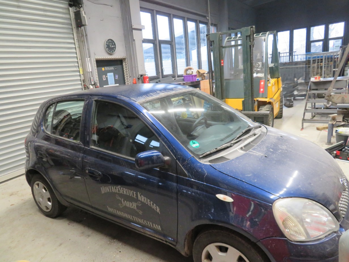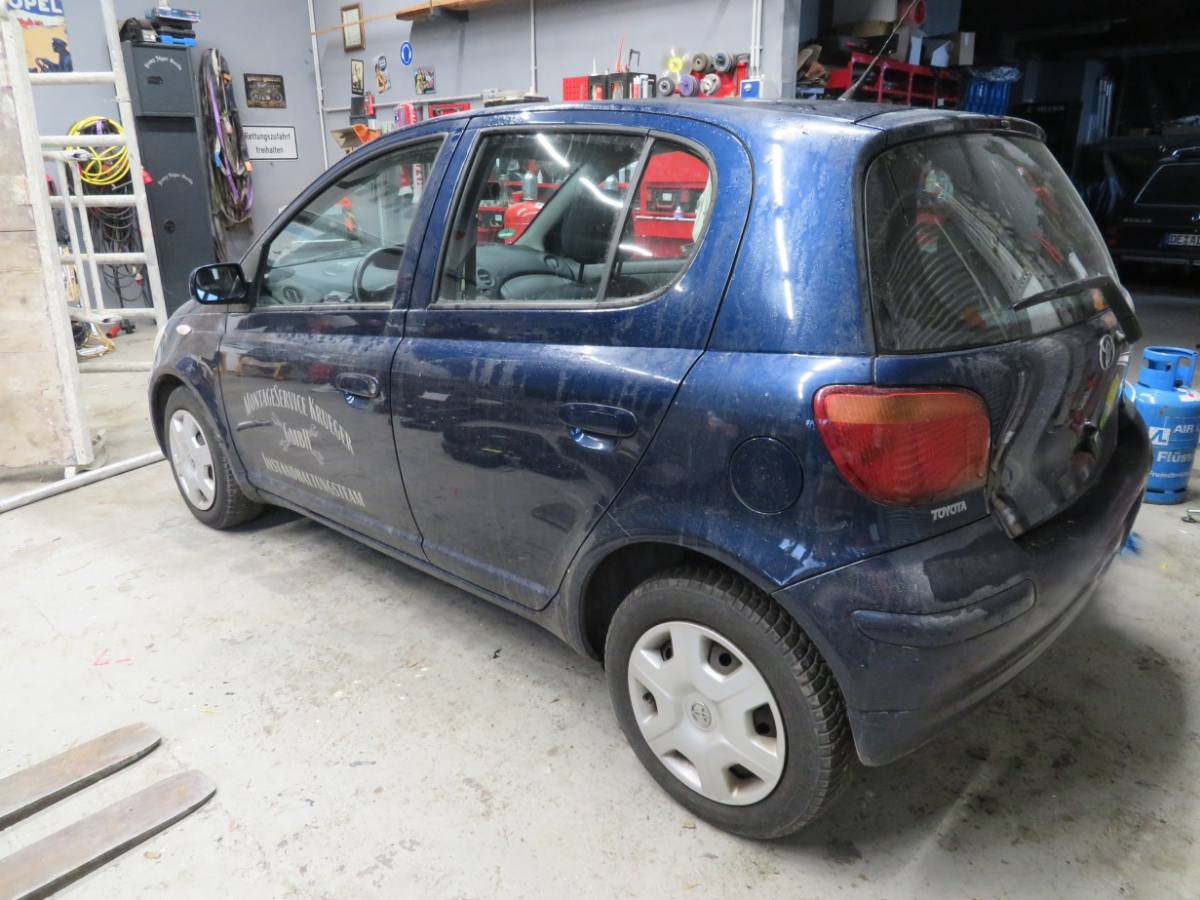 1 PKW, Fabr. Toyota, Typ Yaris, Ident-Nr. VNKKL18360A190005, Erstzulassung 16.06.2005, 64 kW, Euro 4, Benzin, 1298 cm³, TÜV/HU bis 07/2026, Tachostand 206.380 km, 1-Schlüssel vorhanden, Dichtungsgummi Windschutzscheibe porös, Frontscheibe mit Riss im Sichtfeld, Rostansätze am Dach