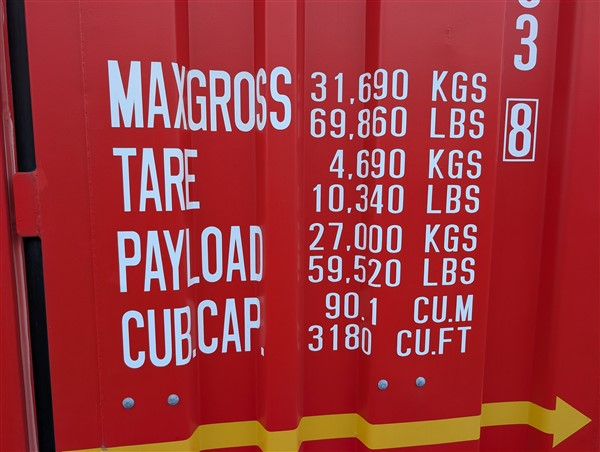 1 One-Way-Container 40 Fuß High Cube, neuwertig, Hersteller: CIMC, Baujahr: 2021, Gewicht: 4.690 kg, Außenmaße: 12,19 m (L) x 2,50 m (B) x 3,25 m (H), Innenmaße: 12,10 m (L) x 2,42 m (B) x 3,03 m (H), Gebrauchsspuren können vorhanden sein