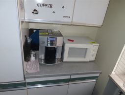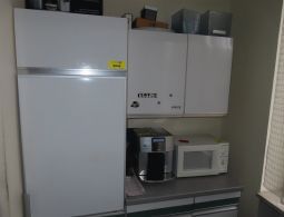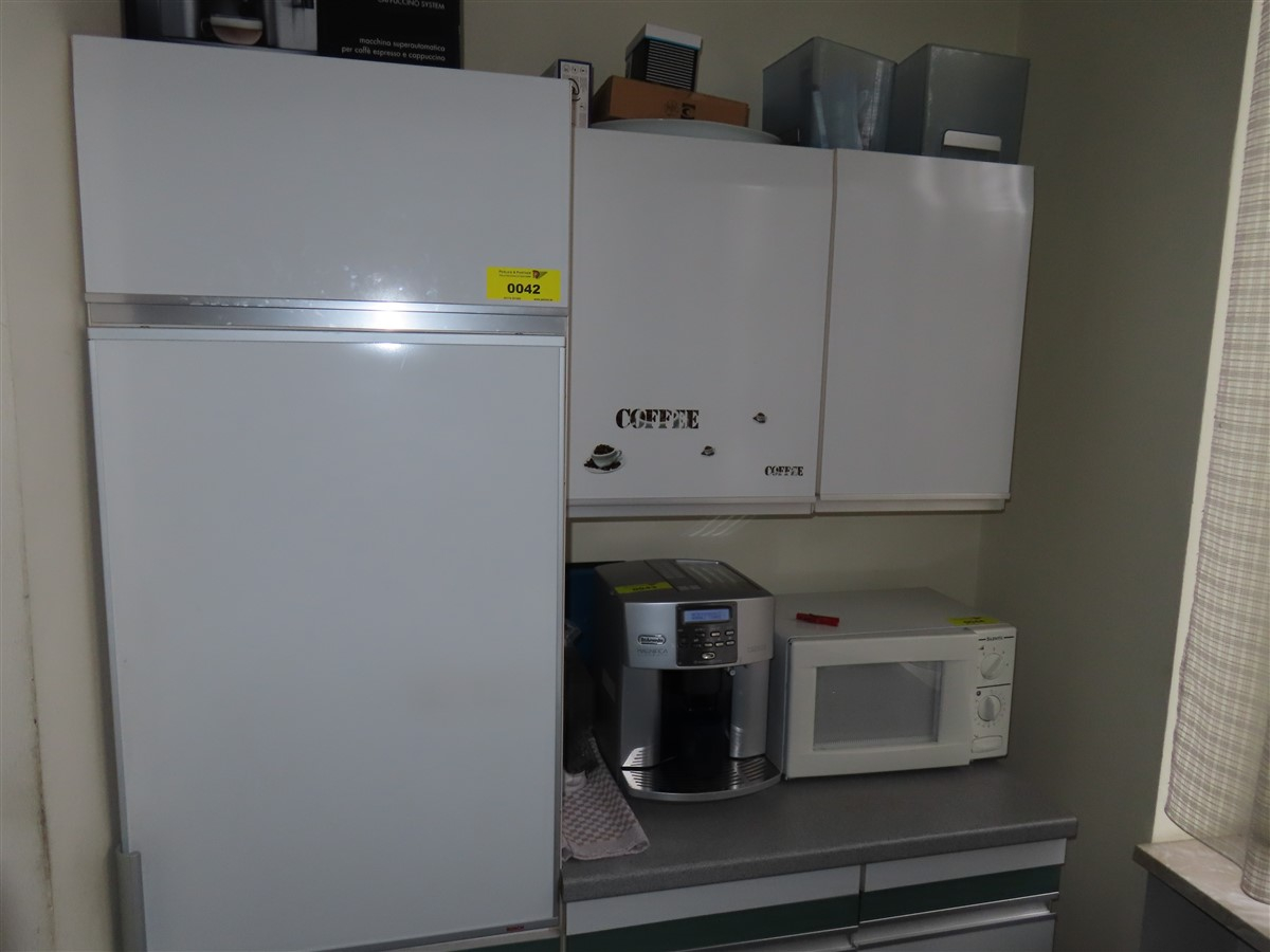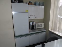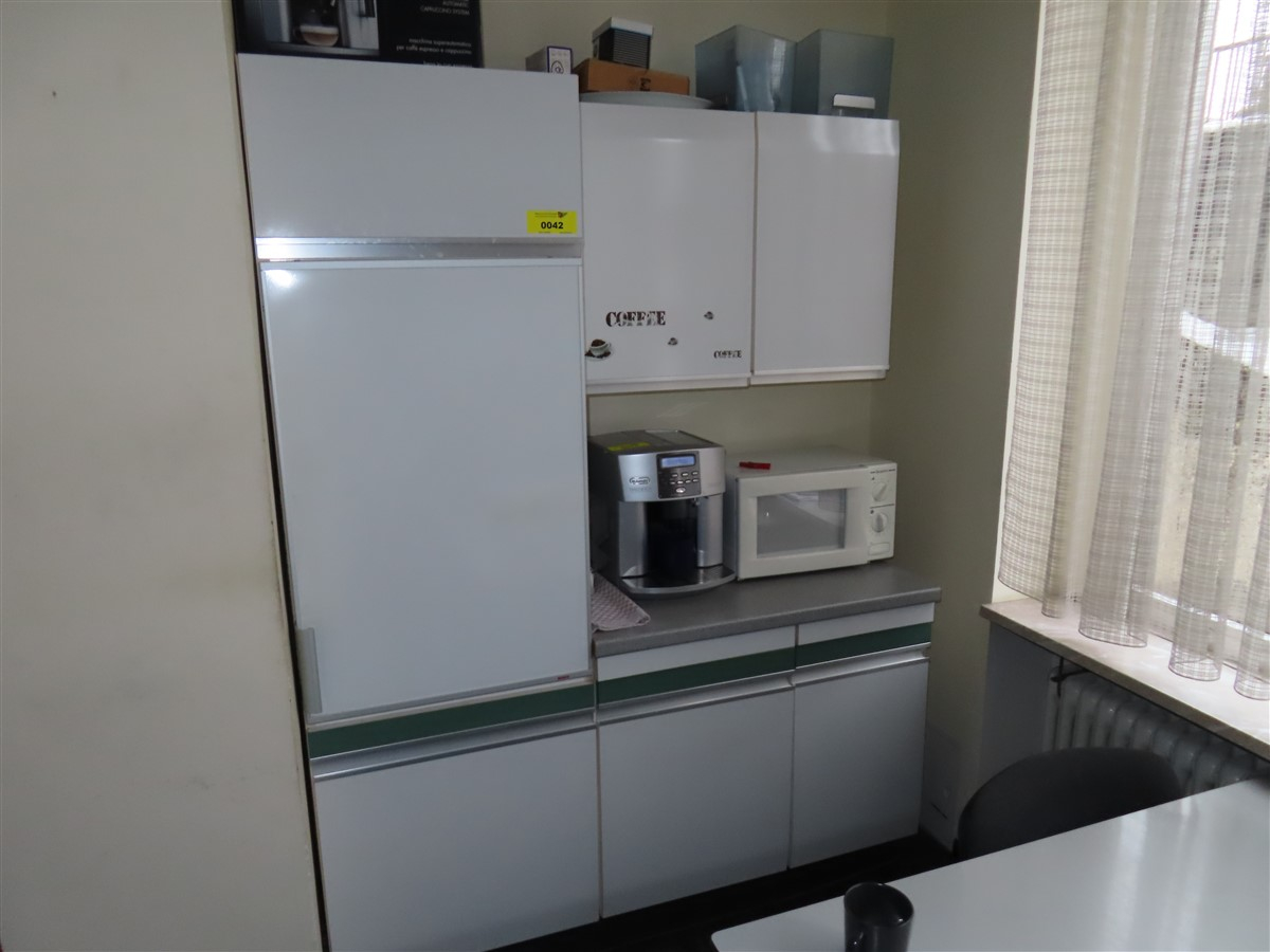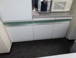 1 Küchenzeile, kurz, weiß, mit integriertem Kühlschrank