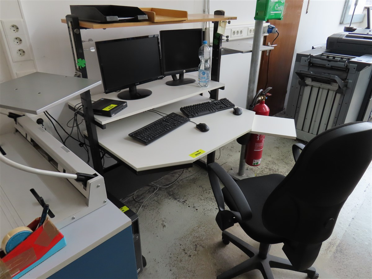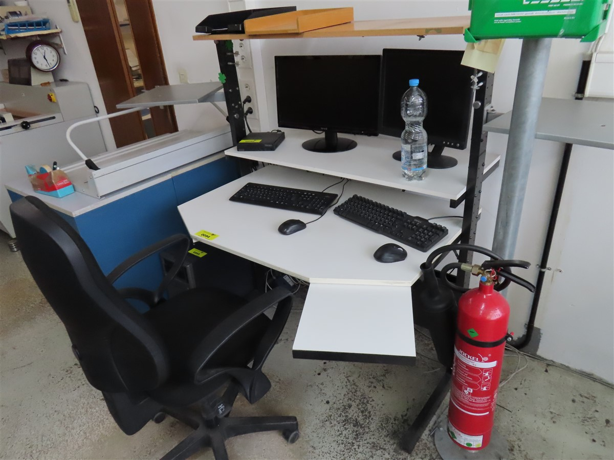 1 Computerarbeitsplatz mit Ablagen und Aufstellfläche für Bildschirme