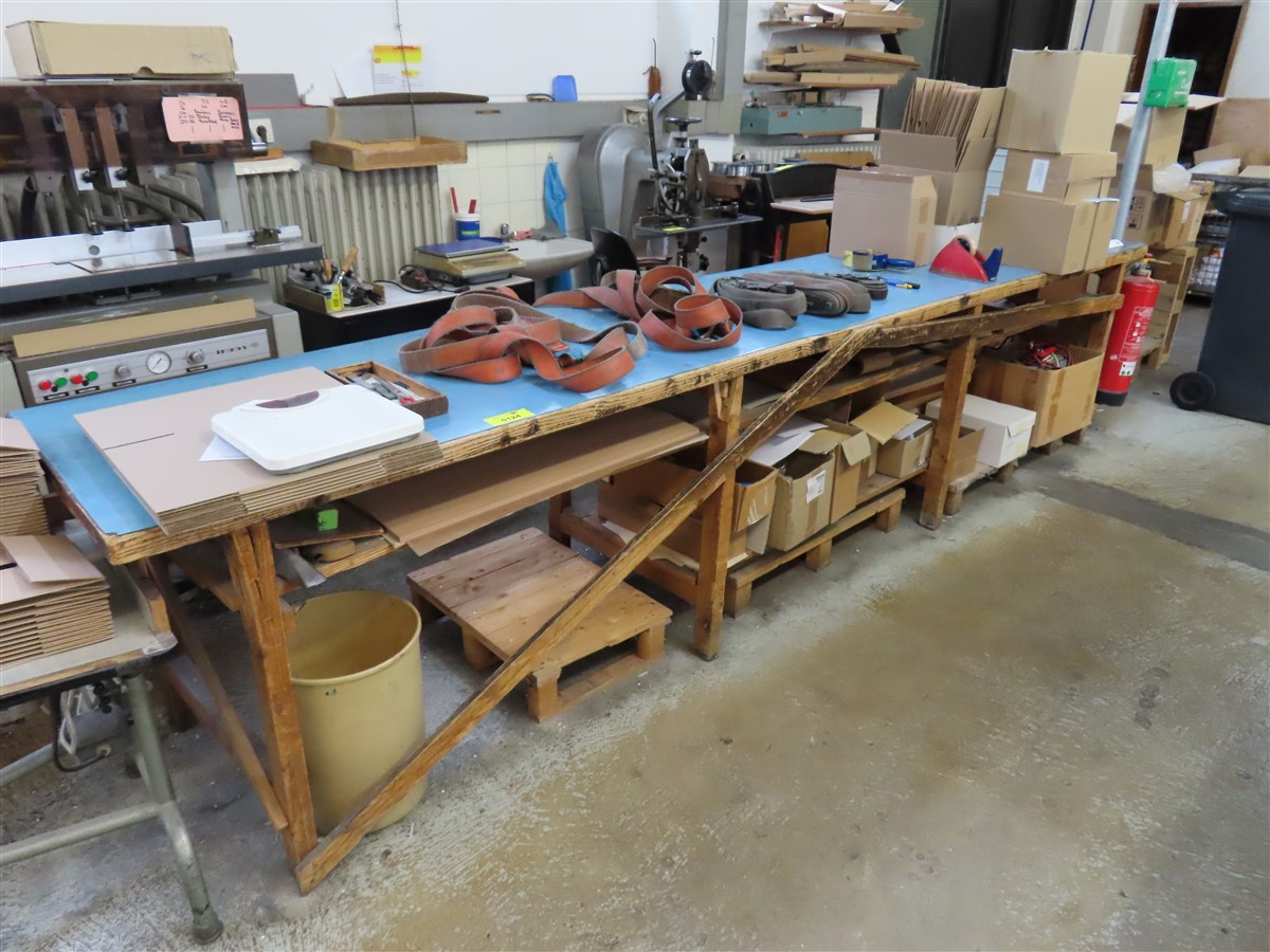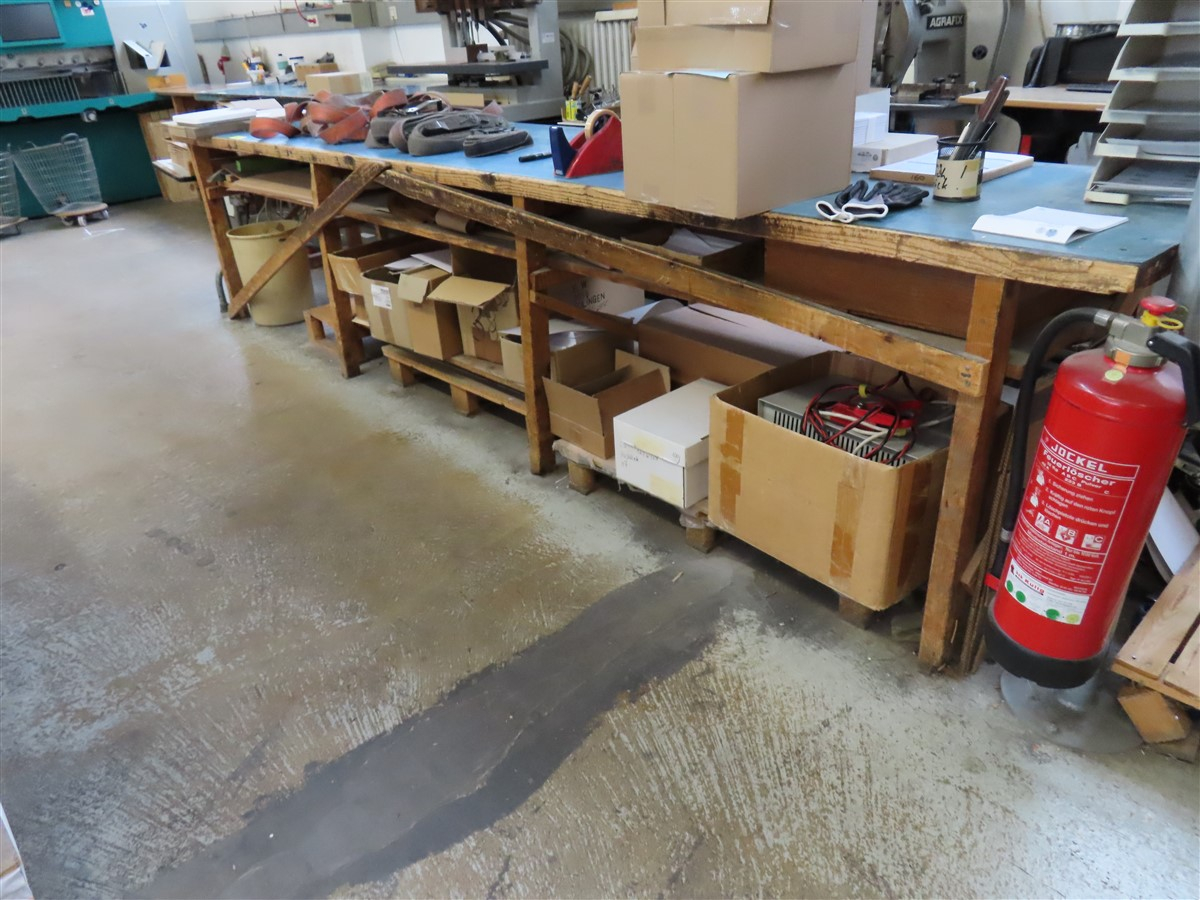 1 Arbeitstisch, ca. 4 lfm, mit Ablagefläche, Holz, ältere Ausführung