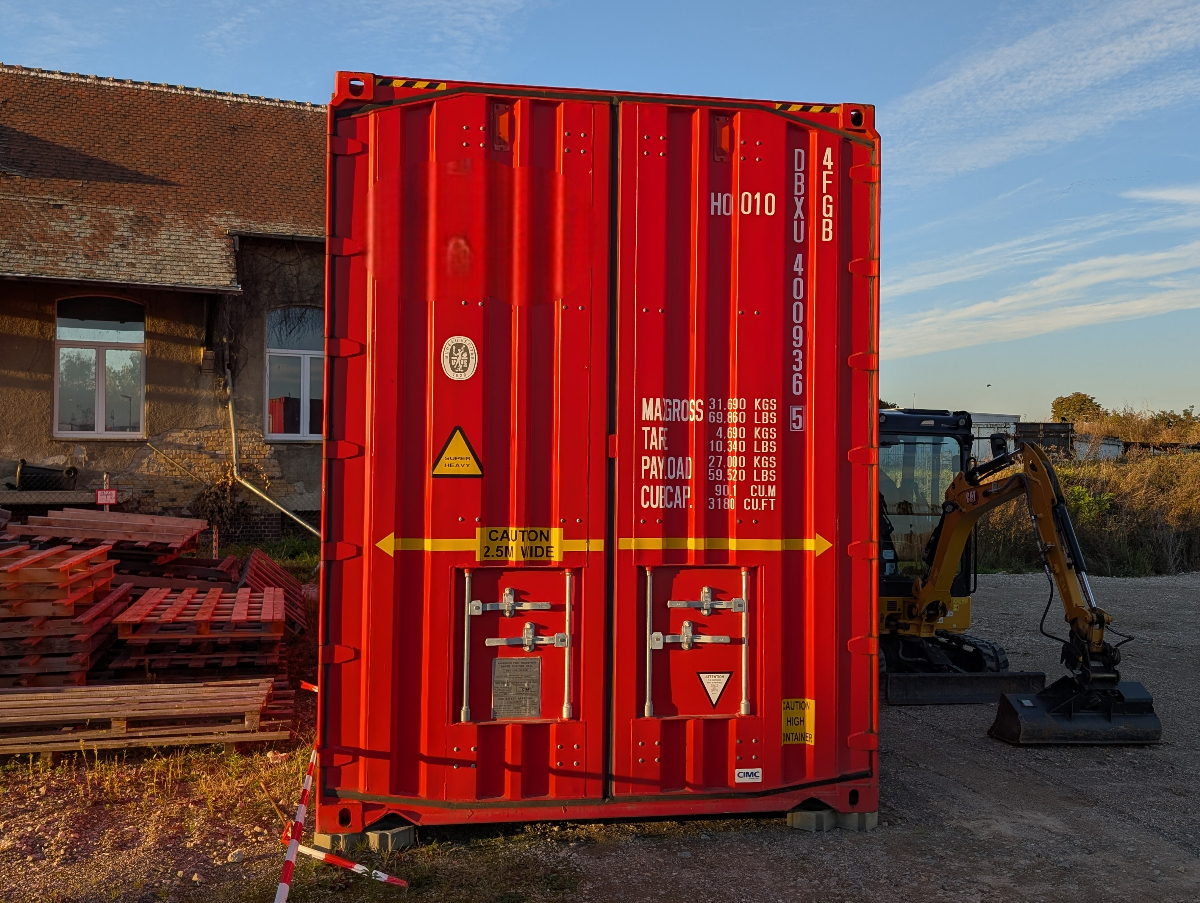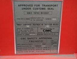 1 One-Way-Container 40 Fuß High Cube, neuwertig, Hersteller: CIMC, Baujahr: 2021, Gewicht: 4.690 kg, Außenmaße: 12,19 m (L) x 2,50 m (B) x 3,25 m (H), Innenmaße: 12,10 m (L) x 2,42 m (B) x 3,03 m (H), Gebrauchsspuren können vorhanden sein.