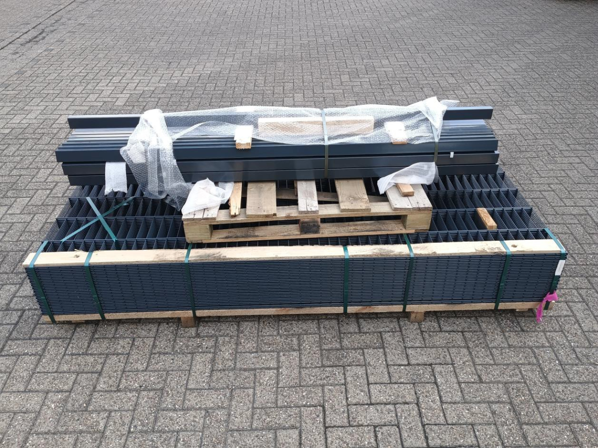 1 Komplettset-Zaunpaket, Höhe: 1830 mm, 75 m, Stärke 6/5/6 mm, verzinkt + RAL7016, anthrazitgrau beschichtet, 30 Stück Doppelstabmatte B 2510 x H 1830 mm 6/5/6 mm MW 50 x 200 mm RAL7016, 31 Stück Zaunpfosten 60 x 40 x 2 x 2400 mm mit Bodeneinstand 600 mm zum Einbetonieren, 31 Stück Hakenkappe (1 Stück pro Posten) und 93 Stück U-Bügelsets (3 Stück pro Pfosten)