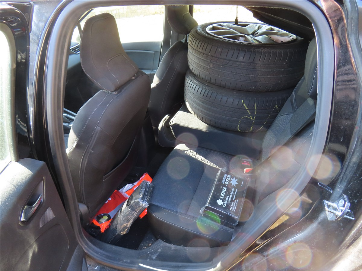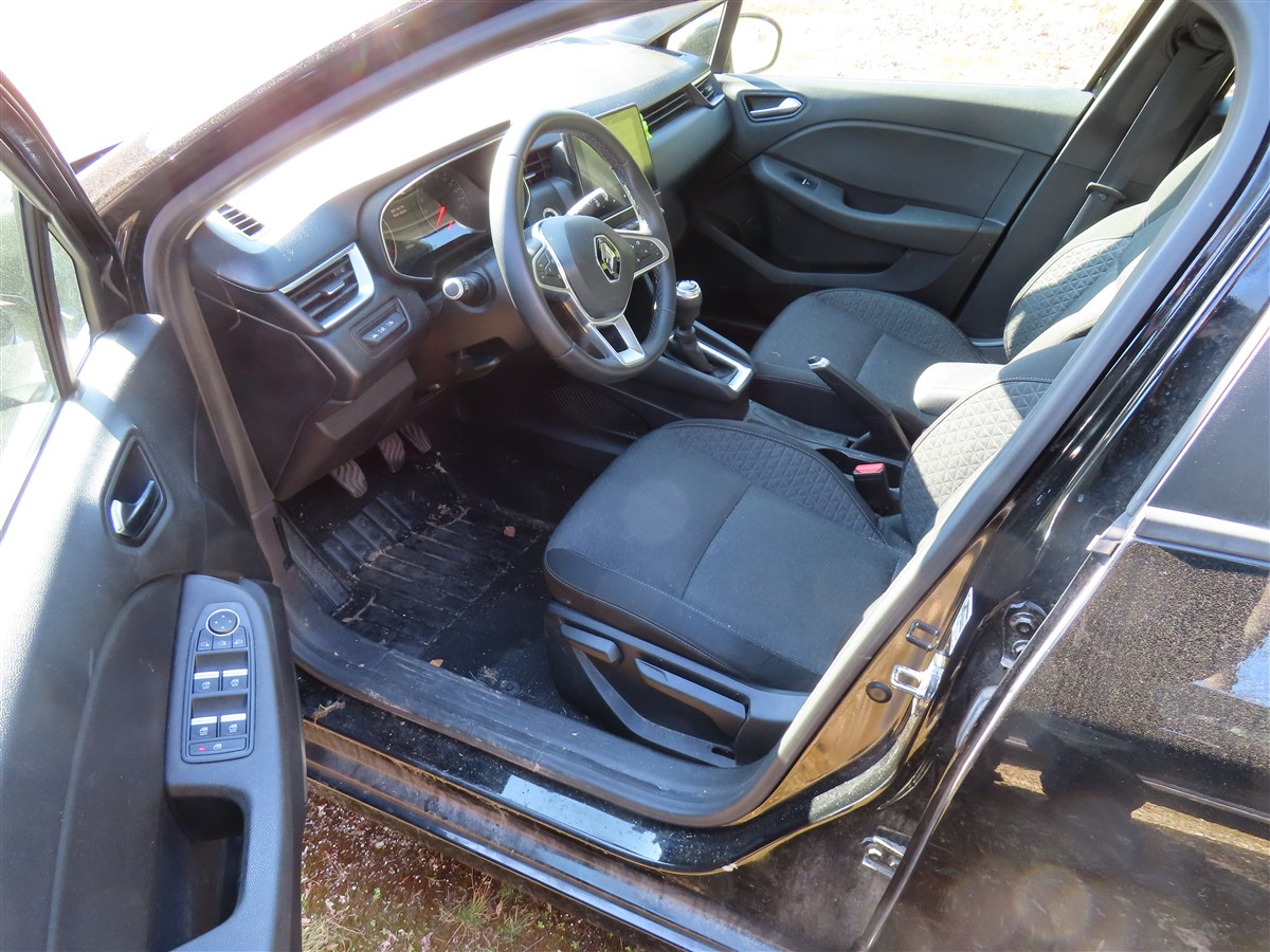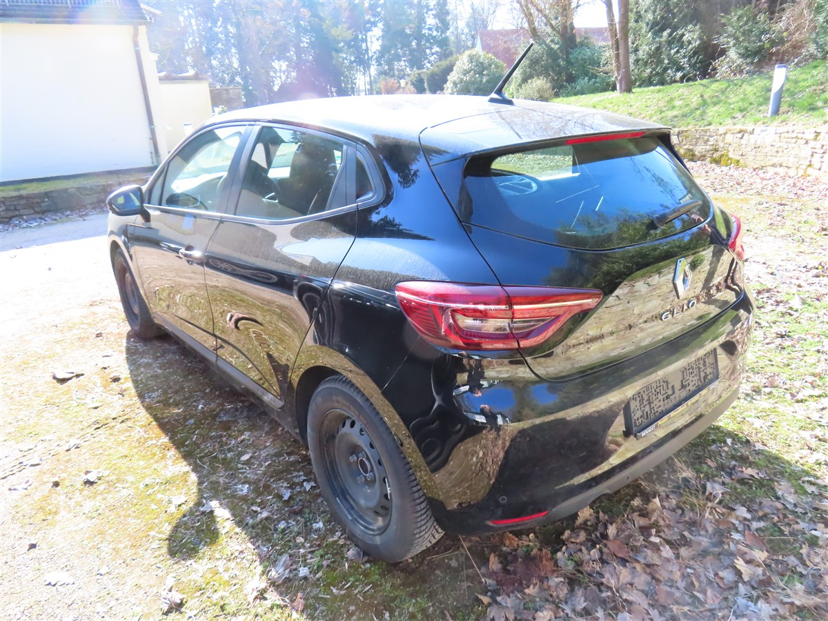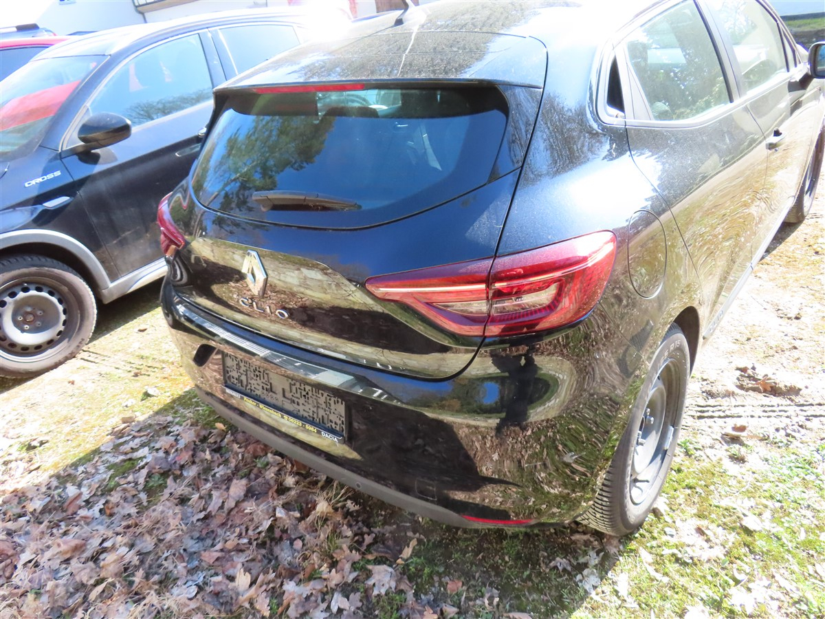 Pkw, Fabrikat: Renault, Typ: Clio, Fahrzeug-ID: VF1RJA00567729927, Erstzulassung: 03.08.2021, 67 kW, Benzin Euro 8, 8fach-bereift, abgelesener km-Stand: 53.510, HU bis 8/26, übliche Gebrauchsspuren rundherum, Stoßstange hinten beifahrerseitig über Radkasten eingerissen, Innenraum verschmutzt