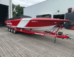 1 Motorboot, Hersteller: USA FOUNTAIN, Fahrzeugtyp: 29 Singeture, Jahr: lt. Rumpfnummer 1994, Refit 2019, Länge: 9,00 m, Breite: 2,56 m, Baumaterial: GFK, Tiefgang: 0,80 m, Verdrängung: 3,000 t, abgel. Betriebsstunden: 130 h, Motoren: 2 Mercury, Baujahr: Refit 2019, kW: 956 (2 x 650 PS), Gesamtgewicht mit Trailer und vollem Tank 4080 KG, Z-Antrieb, inkl. Trailer, Hersteller: Vlemmix, Typ: VBT2-3500
